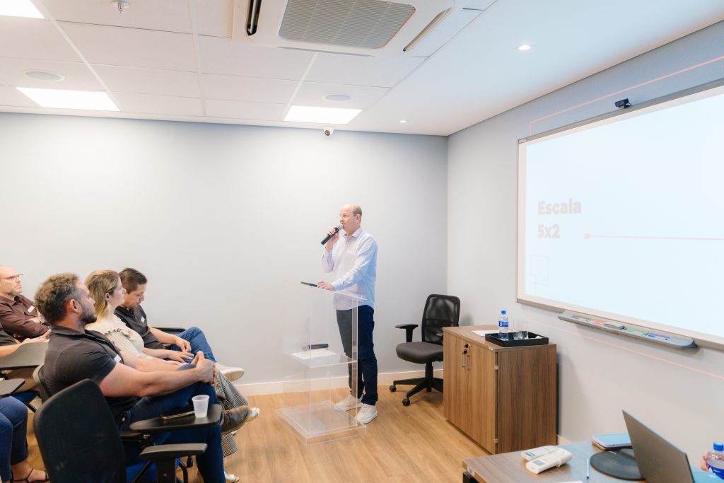 Durante a programação, os participantes acompanharam uma apresentação sobre a escala 5×2. A palestra abordou os desafios e as possibilidades de aplicação desse modelo de jornada de trabalho no setor supermercadista, considerando a necessidade de manter o funcionamento das lojas, a organização das equipes e o equilíbrio entre produtividade e atendimento ao cliente. Também foram discutidos aspectos legais relacionados à adoção da escala e seus possíveis impactos na operação das empresas.