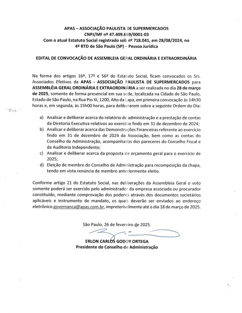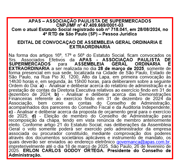 Convocação Assembleia Geral Ordinária e Extraordinária 2025
