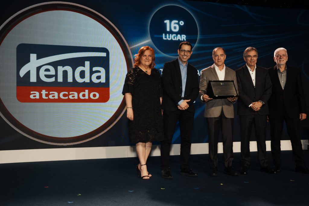 Durante a cerimônia, Shirlei Castanha, vice-presidente da APAS, subiu ao palco para entregar o troféu ao Tenda Atacado, empresa que conquistou a 16ª posição no ranking deste ano, com receita de R$ 8,03 bilhões.