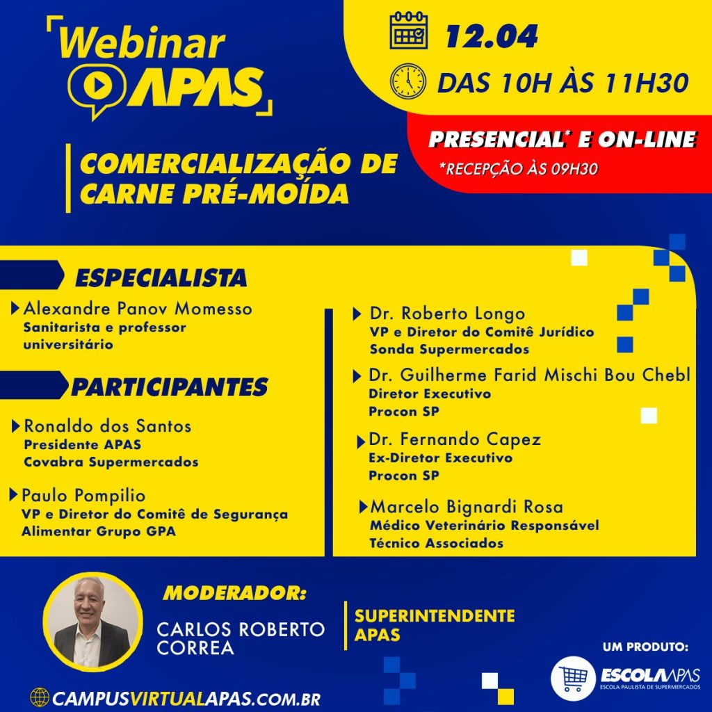 Com a publicação do Decreto 66.634/2022 que regulamentou a venda da carne pré-moída nos supermercados do Estado de São Paulo, o que muda na operação de loja dos supermercados? Como o supermercadista pode se adequar à nova regulamentação e oferecer mais uma opção de produto para os seus clientes? Estas são algumas dúvidas que serão respondidas no webinar “Comercialização de Carne Pré-Moída”, que acontece nesta terça-feira (12), das 10h às 11h30, no Campus Virtual.
